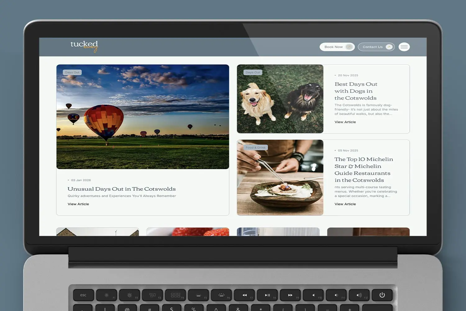 Tucked Away offer a collection of holiday cottages in the Cotswolds and wanted a website that better reflected the quality of their accommodation while making bookings easy to manage in-house. Having outgrown a basic booking website, they were ready to level up their online presence. We designed and delivered a new website that balances visual appeal with clear, user-friendly booking journeys. The site integrates with their existing booking system while giving the Tucked Away team greater control over content and presentation, allowing them to manage the site confidently day to day. Building on the branding work we previously delivered, the new website feels calm, welcoming and aligned with the experience guests can expect from a Tucked Away stay. The result is a more polished platform designed to support future growth.